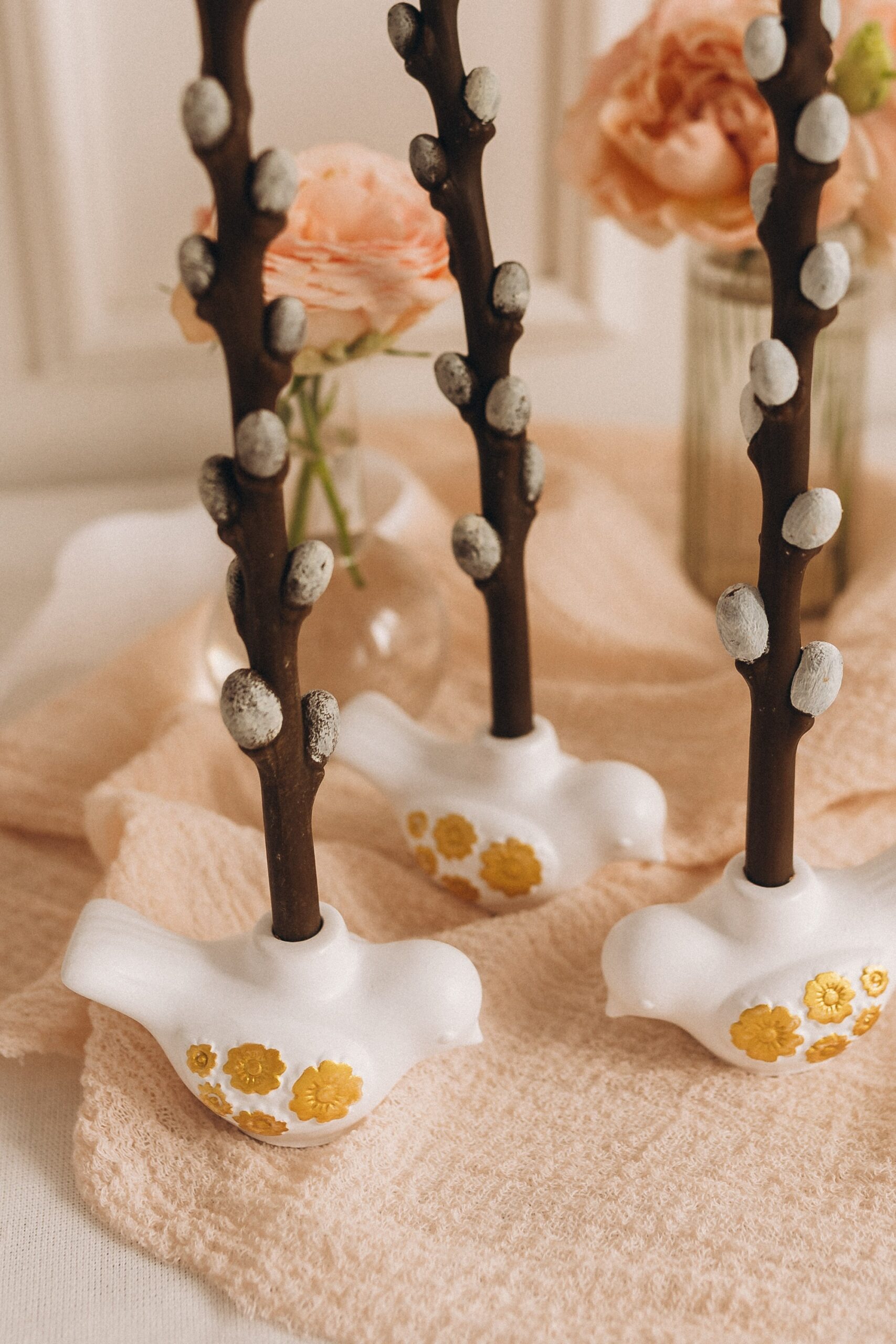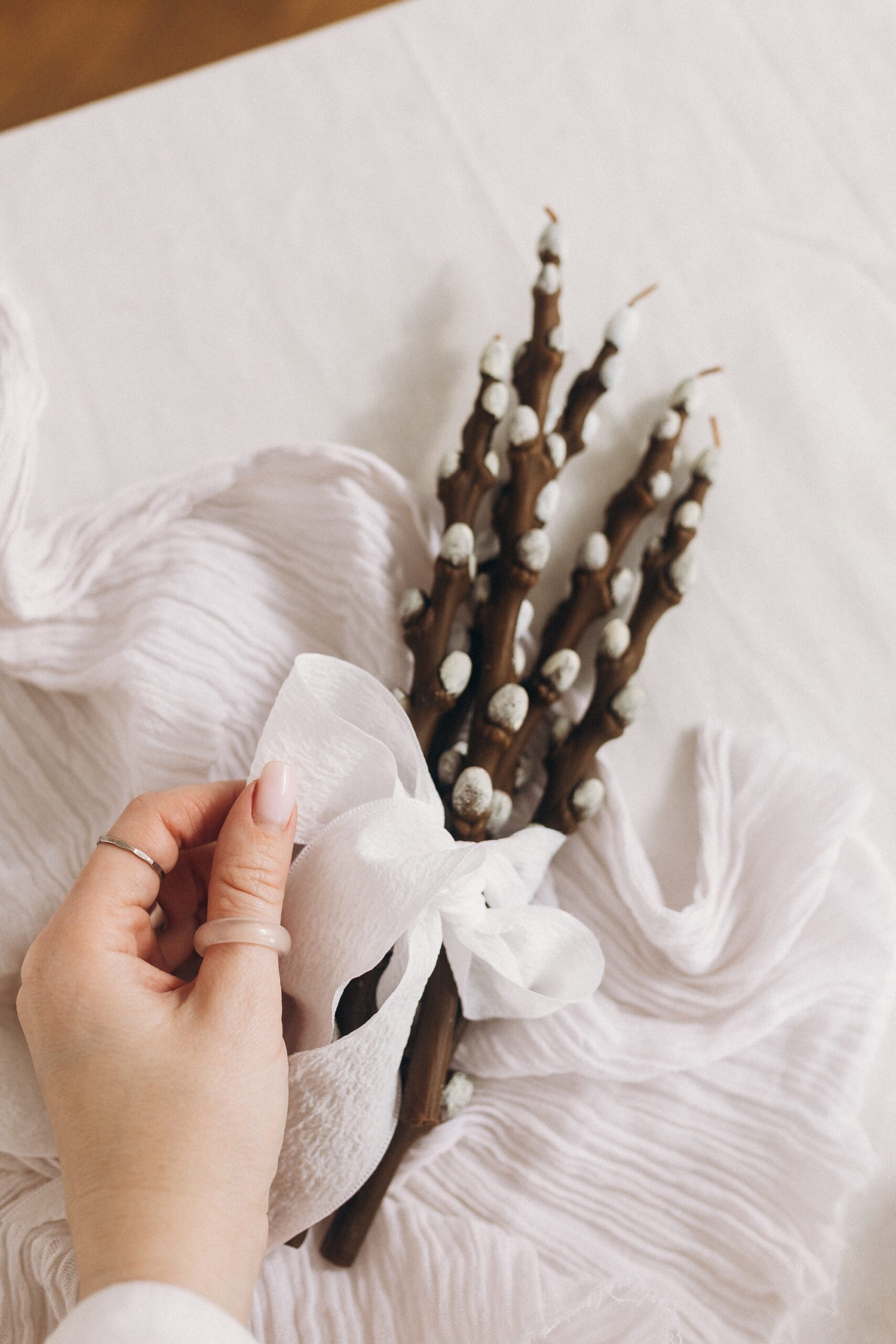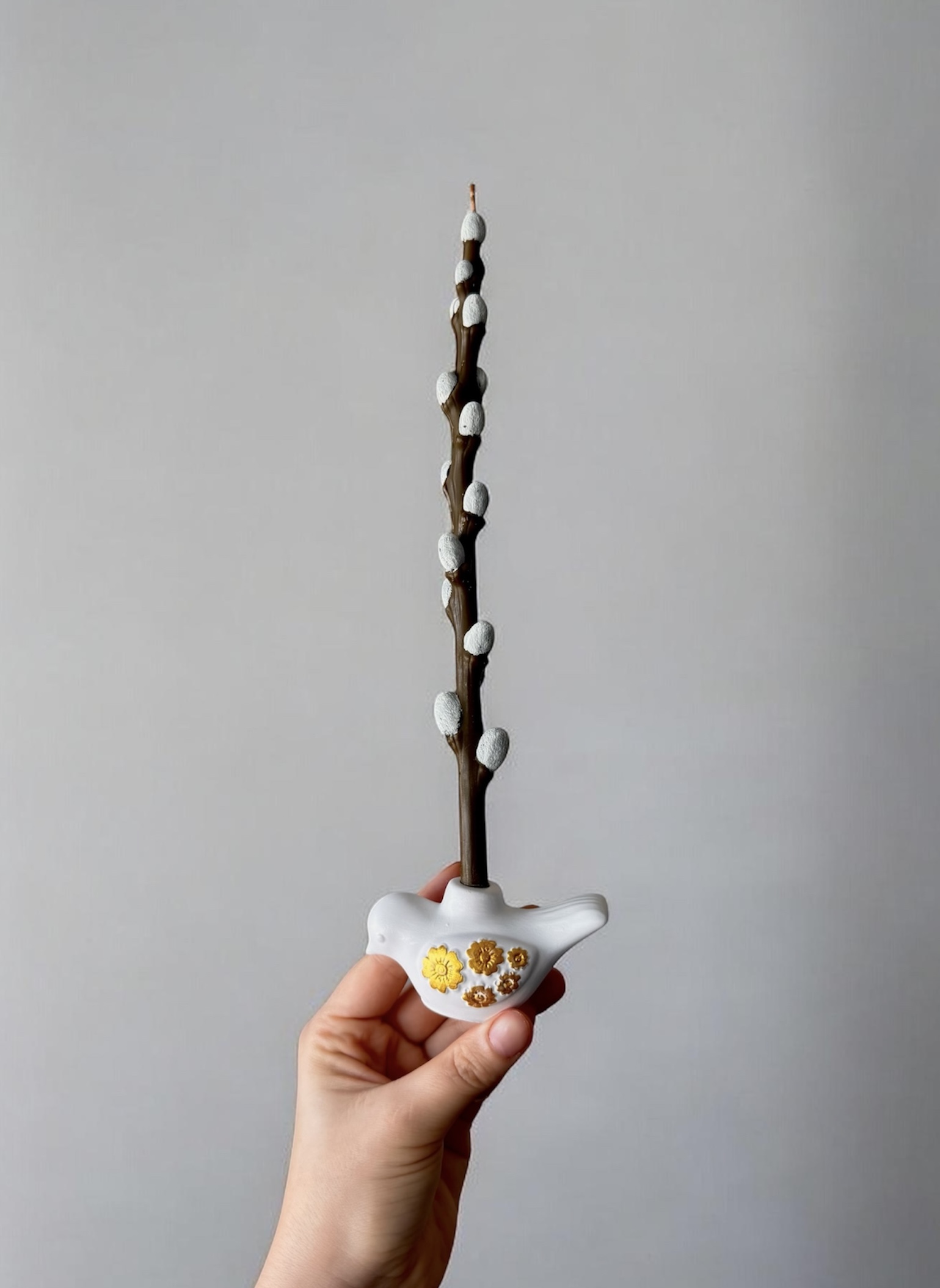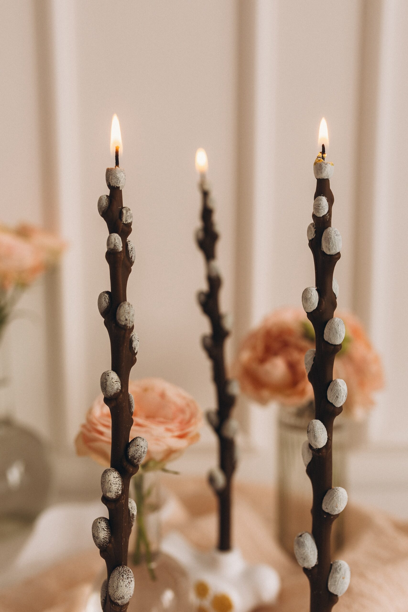 весняна свічка у формі гілочки верби з ніжними “котиками” — символом оновлення, світла та Великодня.