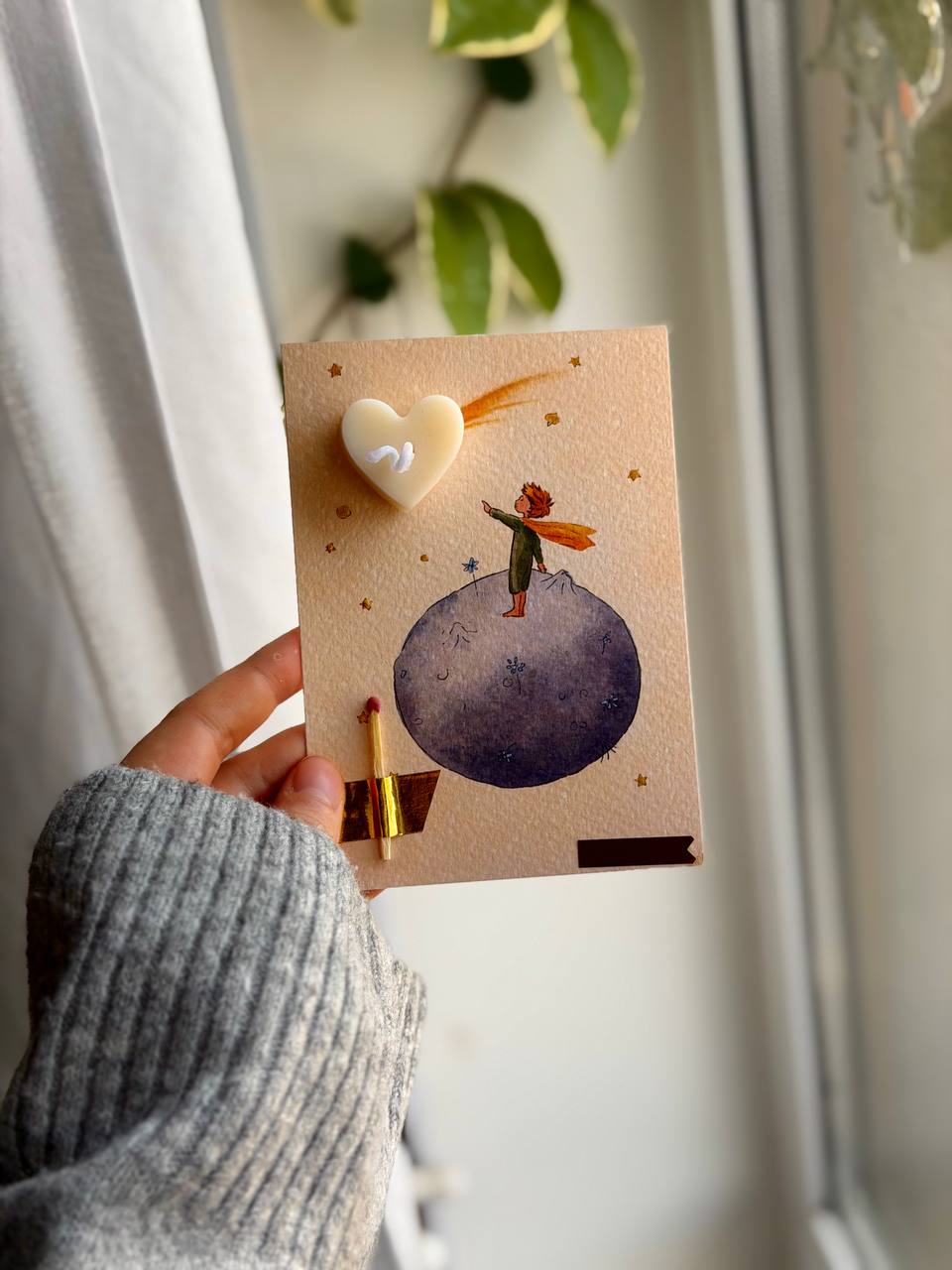 свічка ручної роботи, одна сірничка і затишний дизайн створюють емоцію, яку хочеться зберегти.