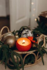 свічка, мандаринка, цитрусовий аромат, новорічний декор, святкова атмосфера, свічка для дому, ароматна свічка, зимова свічка, подарунок на Різдво, свічка ручної роботи, новорічні свічки