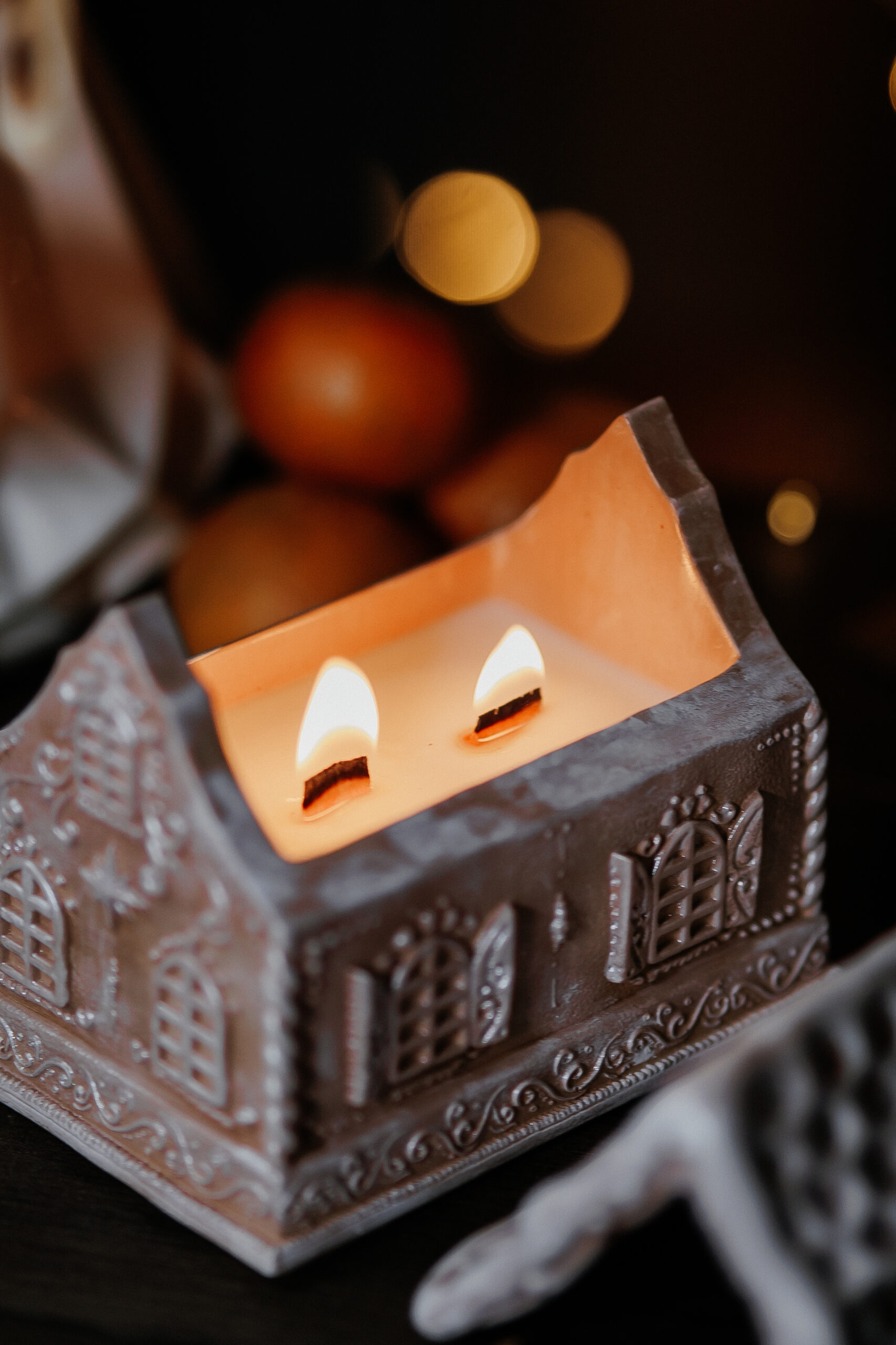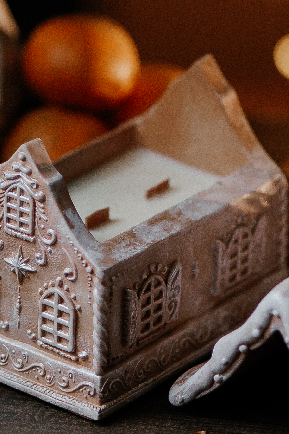 свічка, пряниковий будиночок, свічка для свят, новорічний декор, подарунок на Різдво, свічка з ароматом, святкова атмосфера, свічка для дому, зимова свічка, новорічні свічки, свічка ручної роботи, свічка для подарунка, зимовий декор, пряники, свічка в подарунок