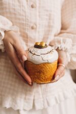 Її форма нагадує справжню святкову паску з ніжною глазур’ю та золотими деталями. Кожна деталь створена вручну, тому кожна свічка має свій особливий характер.